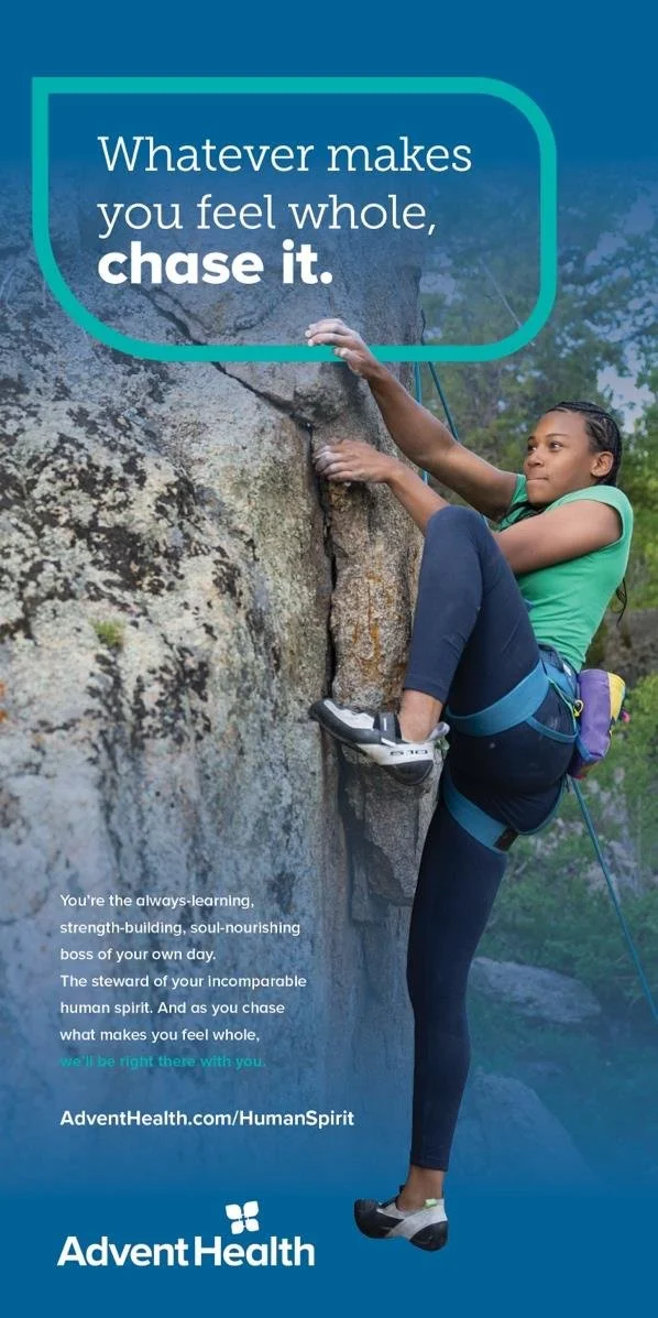 We introduced The Pursuit of Wholeness, a brand evolution designed to remind everyone they have a say in their health journey. This campaign positioned AdventHealth as both a guide and a partner, supporting every step along the way: